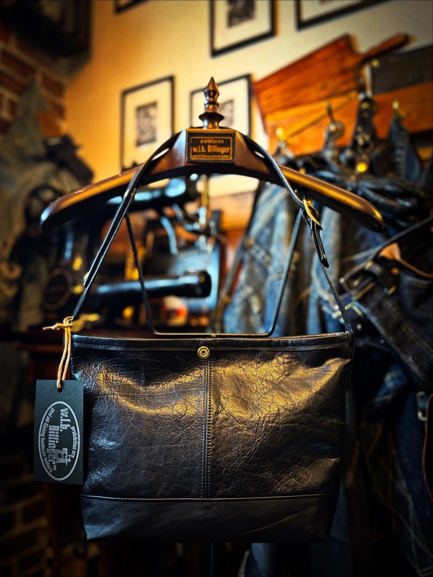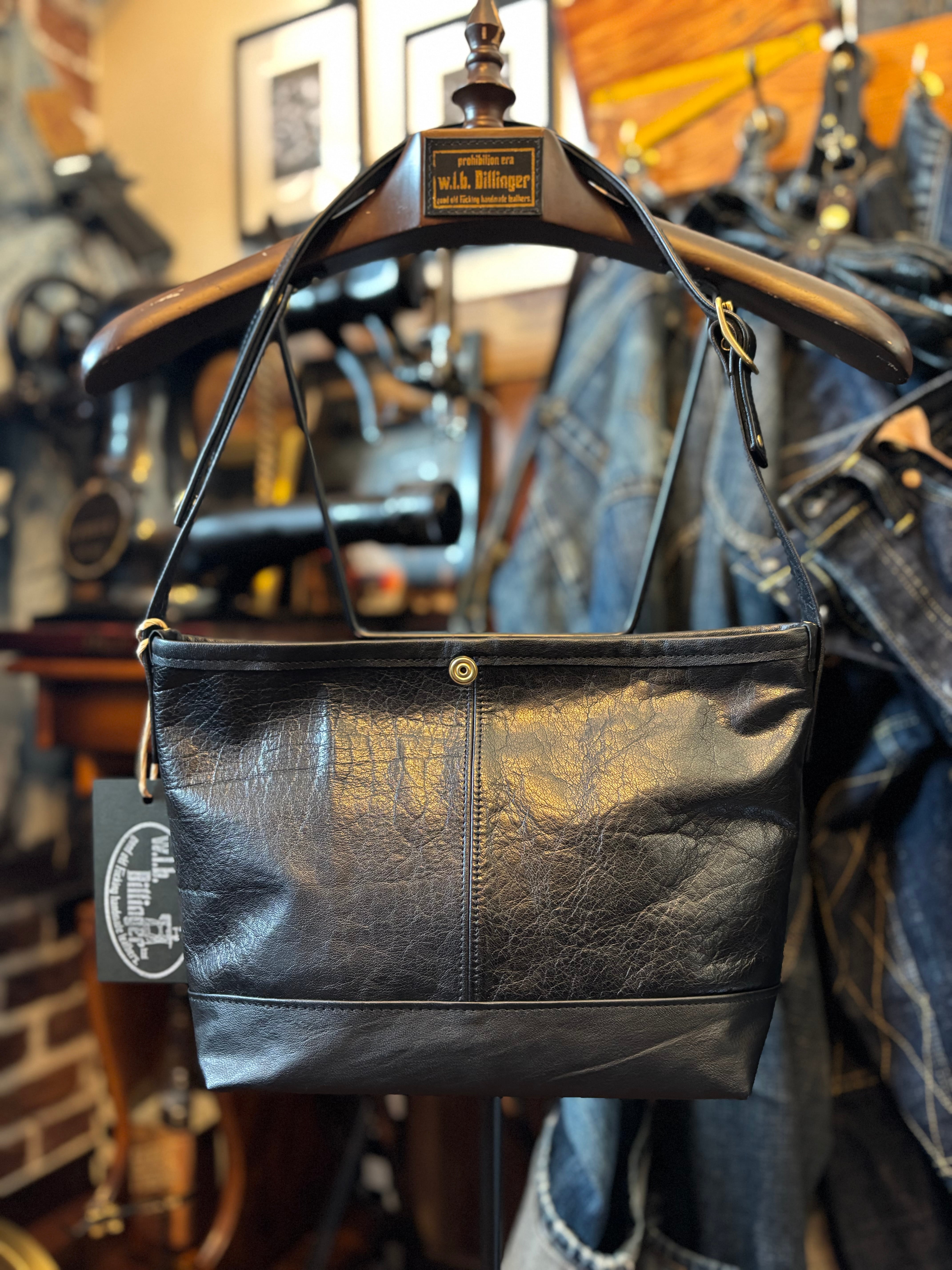 今回はバッグ全体を通してw.l.b.Dillingerの持ち味の、パーツ毎に異なった革を配置したモデルを製作しました。