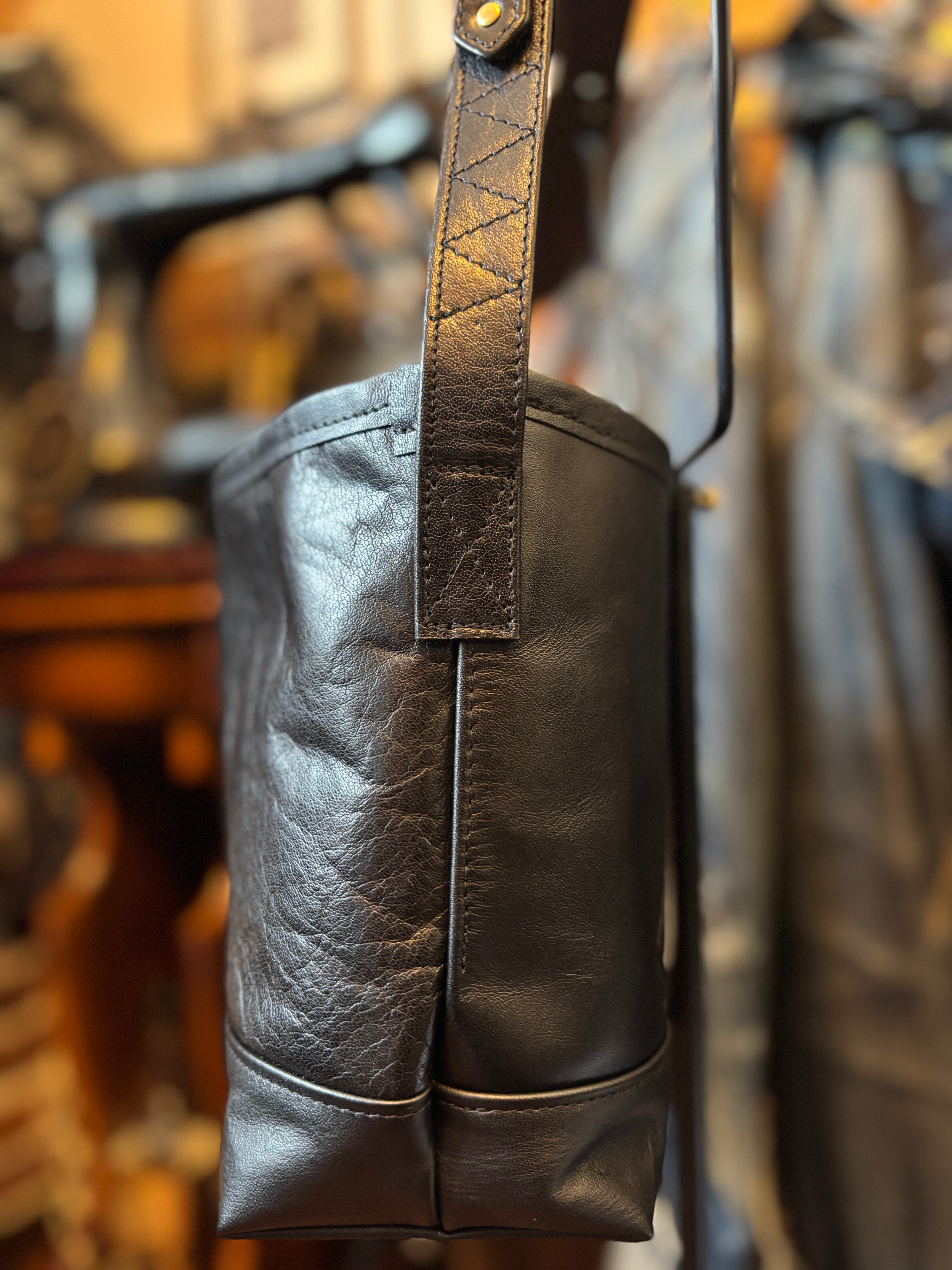 ハンドル、背面ポケット、内装zipポケットを排除しシンプルでアイテムの出し入れがよりし易く、かつ全体の革を1.0㎜〜1.3㎜に割って軽量化を測りレザーバッグをより気軽に持ち出せる様ライトなモデルに仕上げました。
