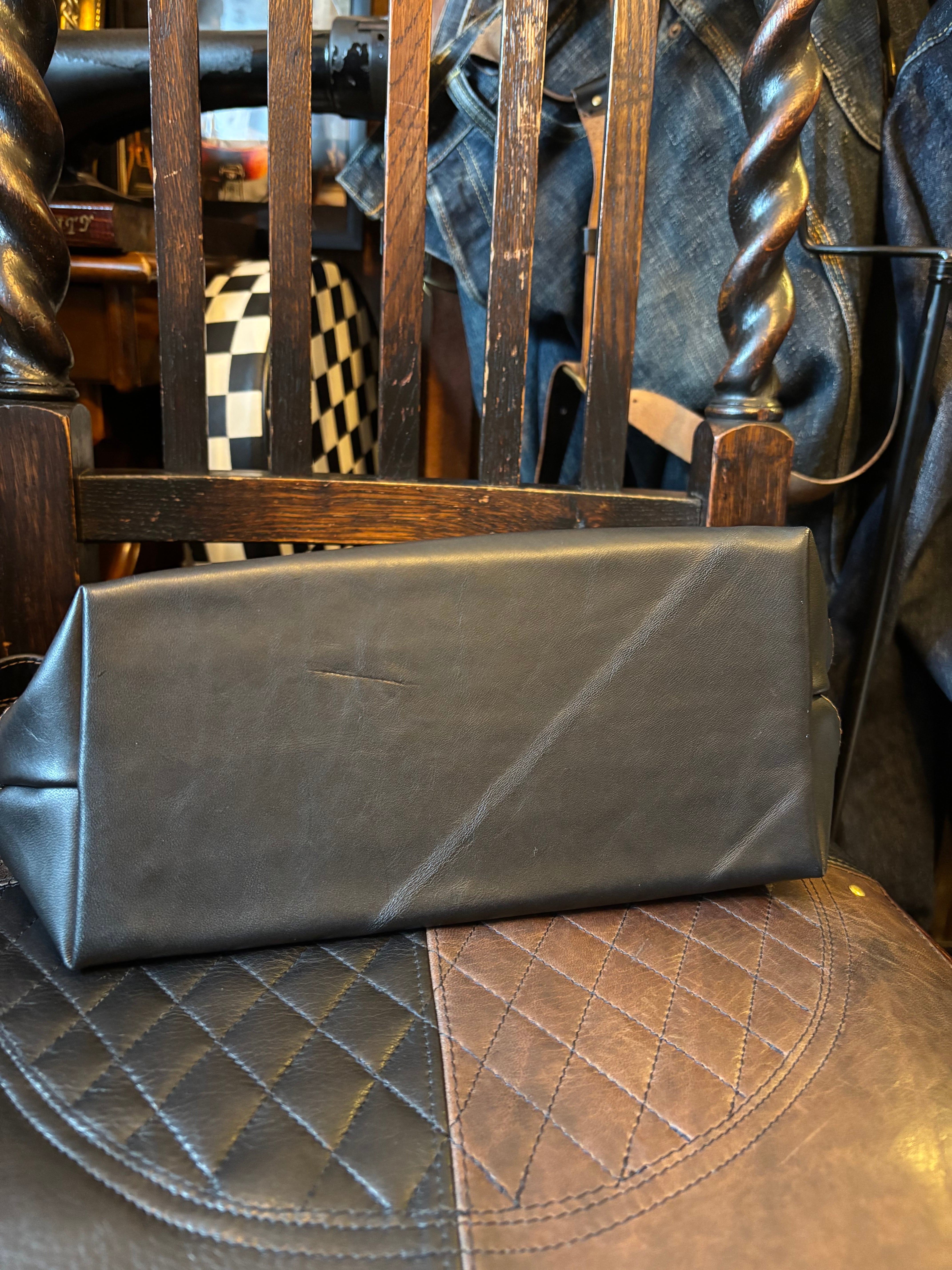 バッグ全体同革一枚物コンビ鞣し牛革姫路レザー。色付け顔料黒。