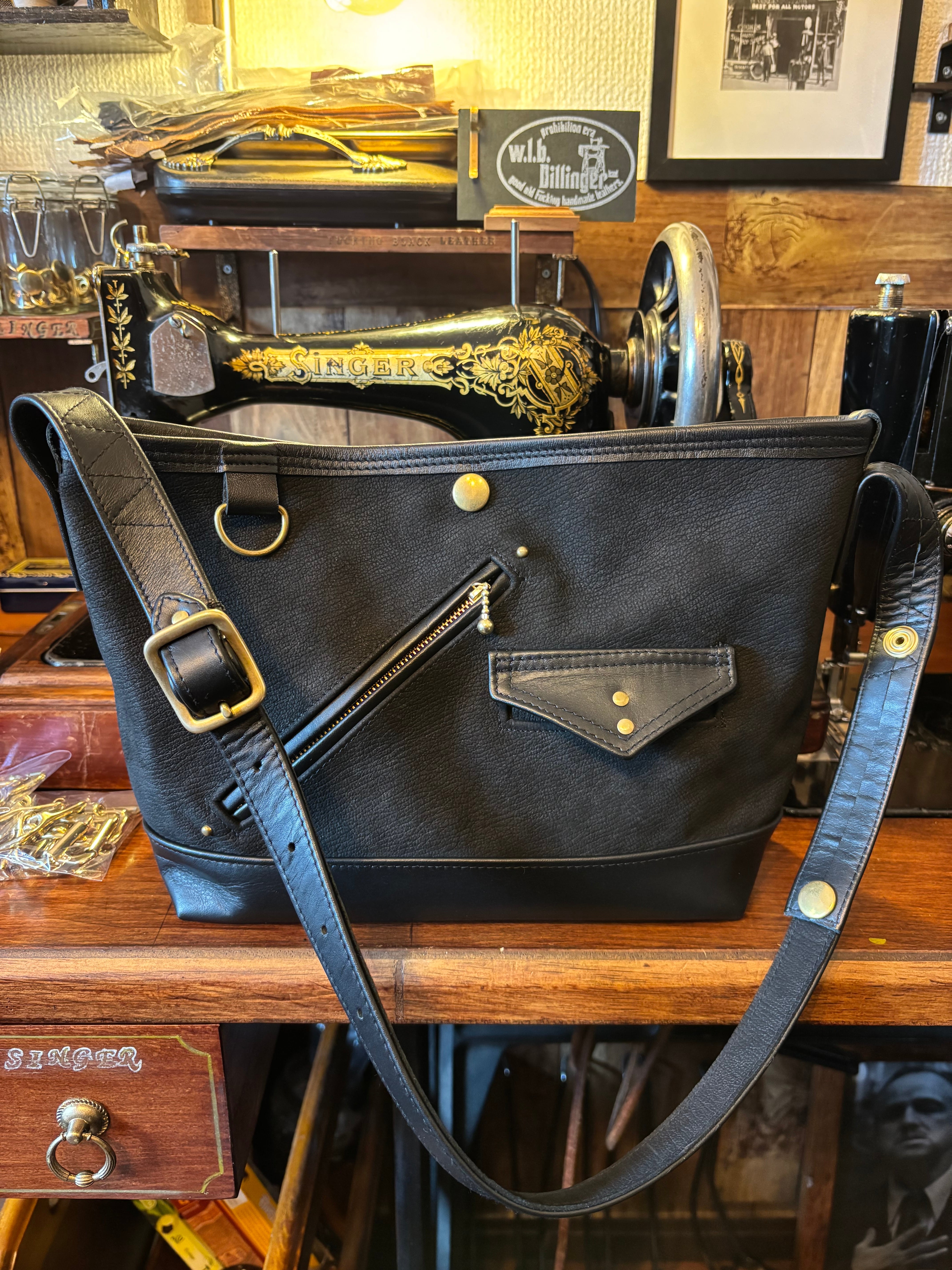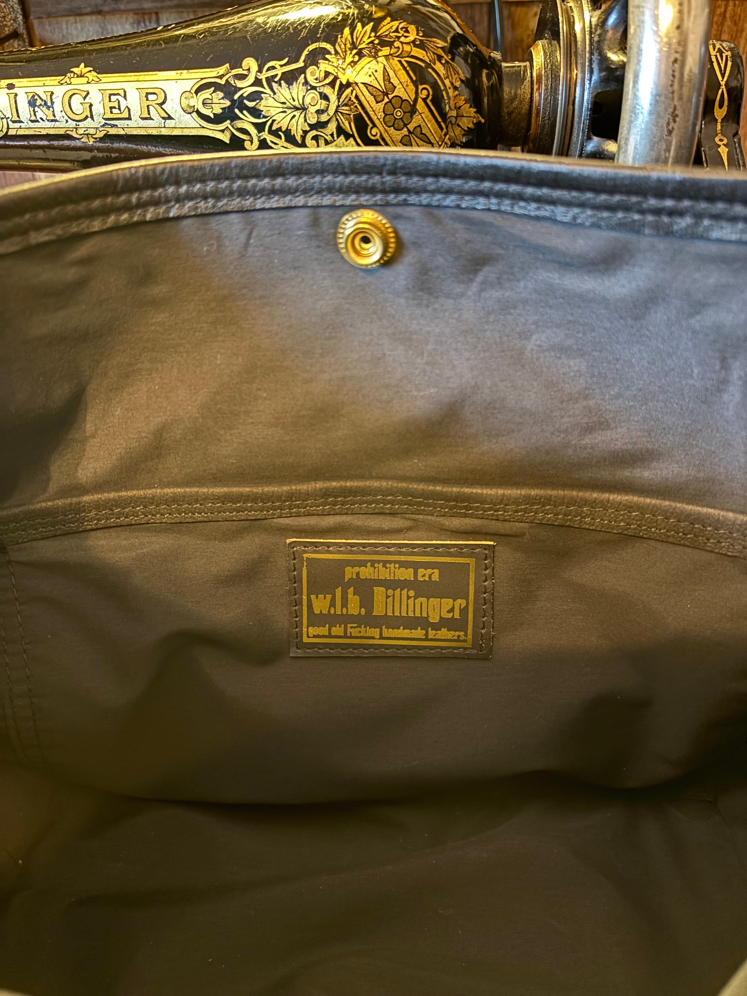 バッグ全体を通してw.l.b.Dillingerの持ち味の、パーツ毎に異なった革を配置したモデルを製作しました。